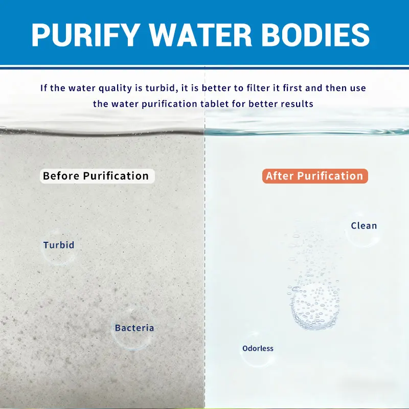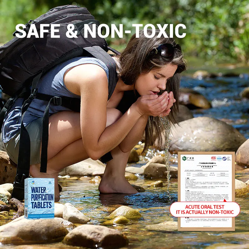 1 Box Water Purification Tablets, 25 Tablets Per Box Individual Packaged, Suitable for Outdoor Water Flow River Cleaning Purify