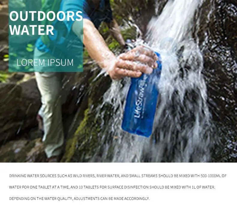 2 Bottles of Outdoor Water Purification Tablets, 100 Tablets Per Bottle, for Cleaning and Purifying Dirty Water From Sewage
