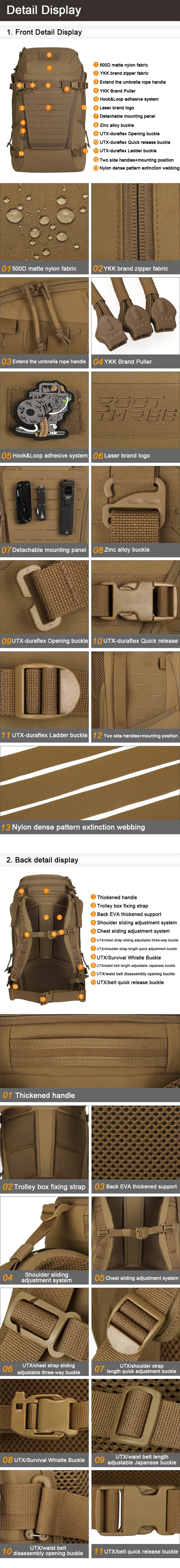 45L 500D/DML Nylon Waterproof MOLLE Tactical Backpack Outdoor Fishing Camping Hiking Bag Multi Layer Detachable DIY Backpack