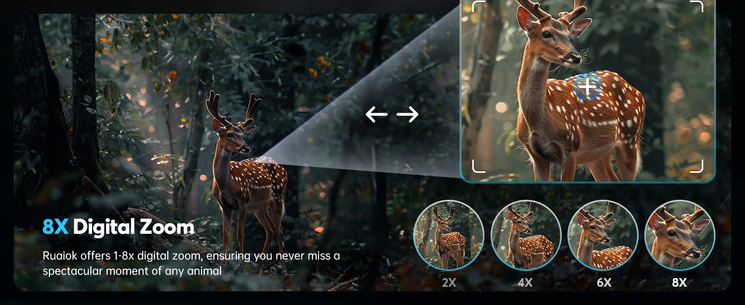 ✅ 8X Digital Zoom + 8 IR Levels