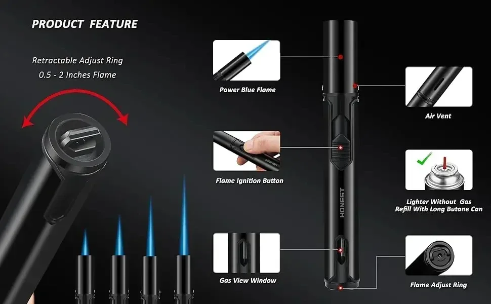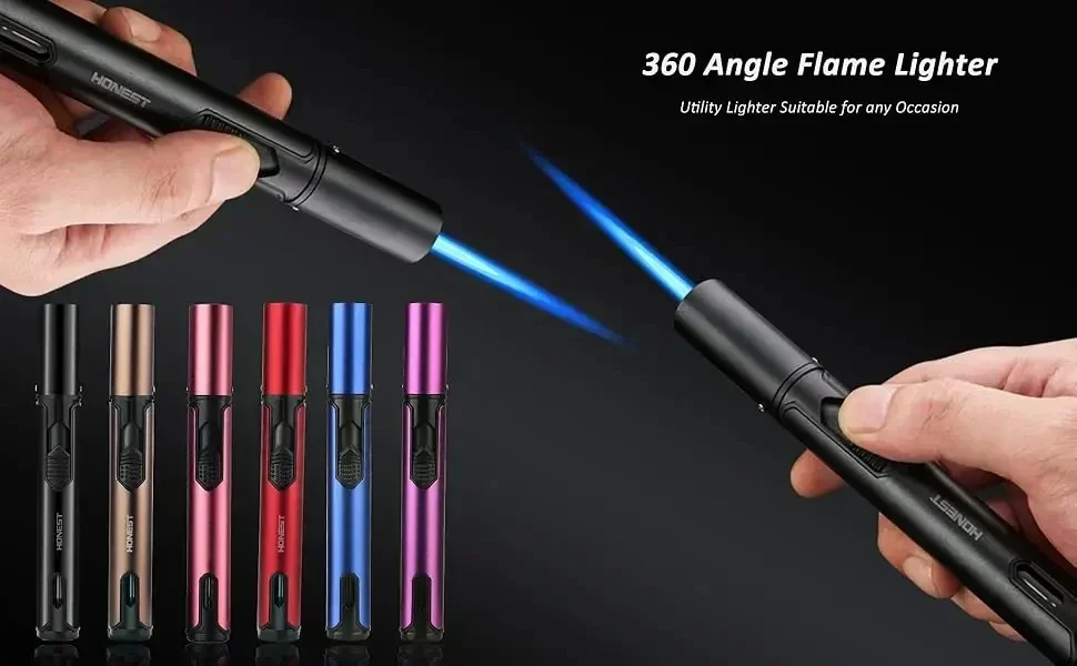 4PC/1PC Honest Metal Windproof Torch Gas Lighter, Refillable Pen Jet Flame Igniter for Kitchen BBQ Candle Camping Men's Gadget