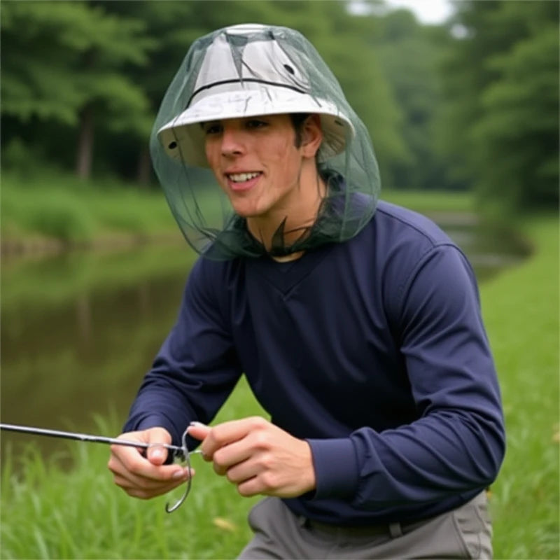 Fishing Anti Mosquito Insect Hat Fishing Hat Bug Mesh Head Net Face Protector Camping Sunshade Hats Outdoor Travel Camping