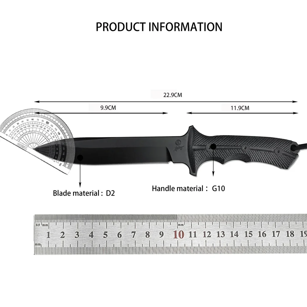 Green Beret Tactical Fixed Blade Knife with Sheath - D2 Steel Survival Knife, G10 Handle for Military EDC, Outdoor Camping