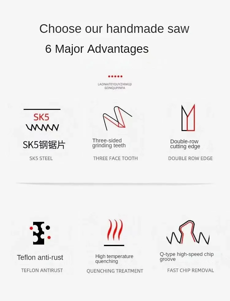 5. Usage scenario:It can be used for sawing wood, cutting PV pipes, pruning branches, sawing coconut shells, etc.