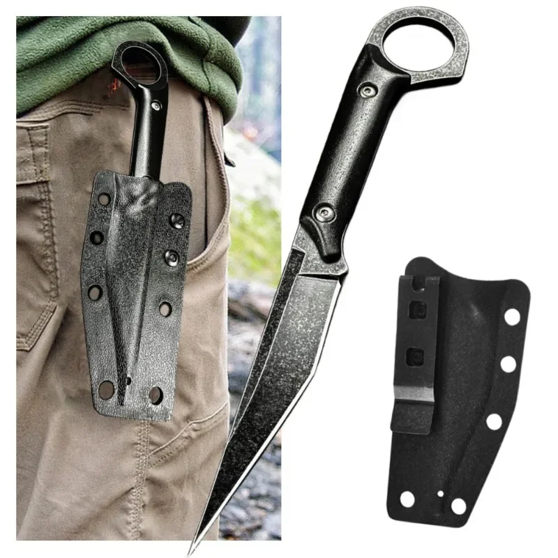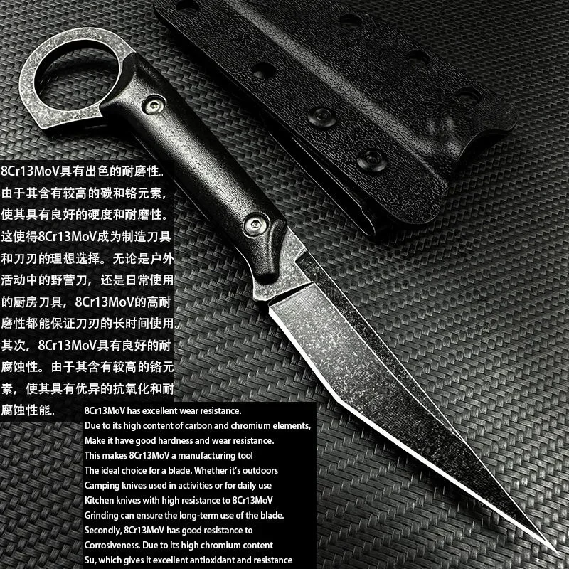 New corrosion-resistant portable knife, multi-purpose outdoor straight knife K-sheath, jungle self-defense EDC knife。