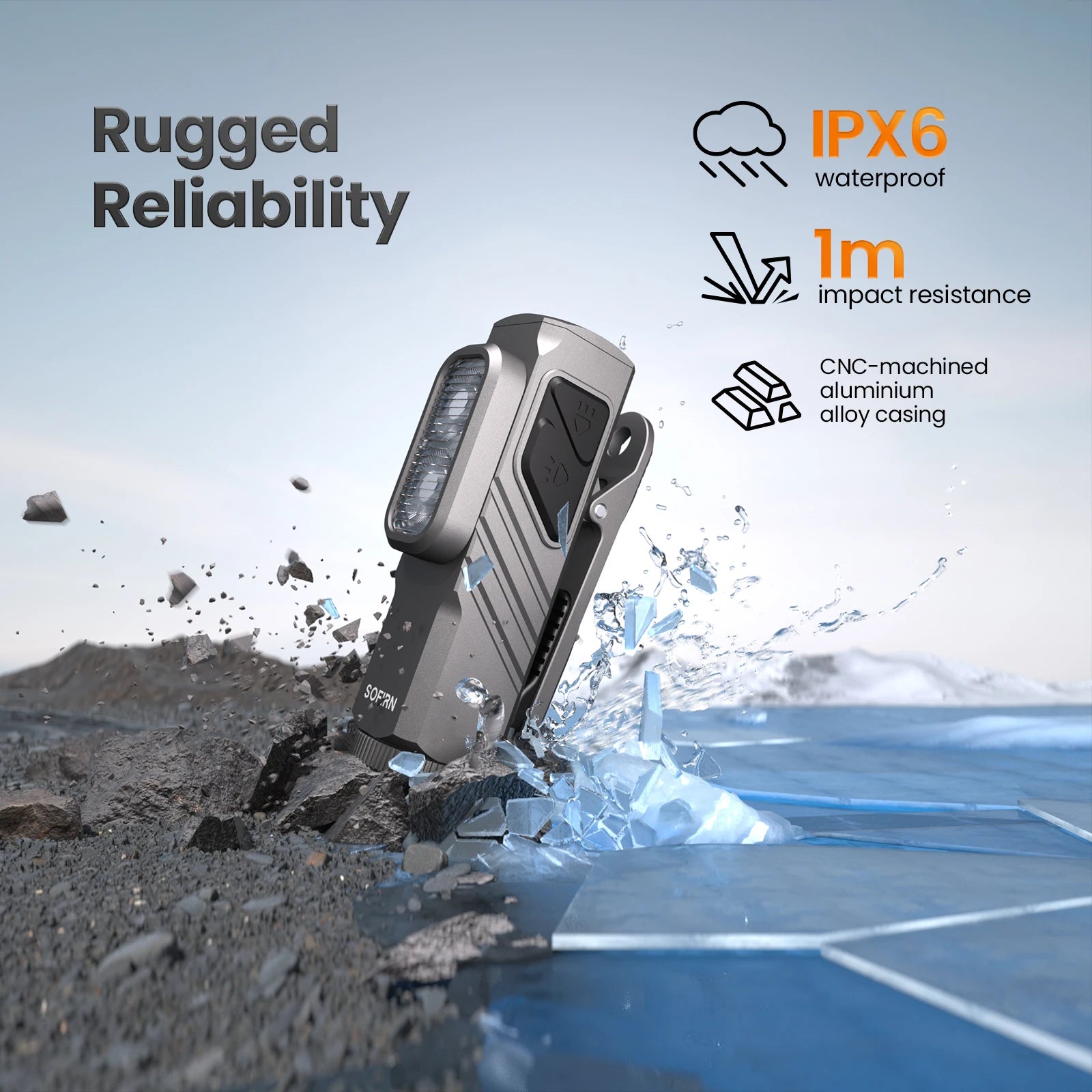 Made of AL6061-T6 aluminum alloy (CNC + anodized finish) for wear/rust resistance. Withstands 1m drops, IPX6 waterproof, and 55℃ max surface temp (no overheating).