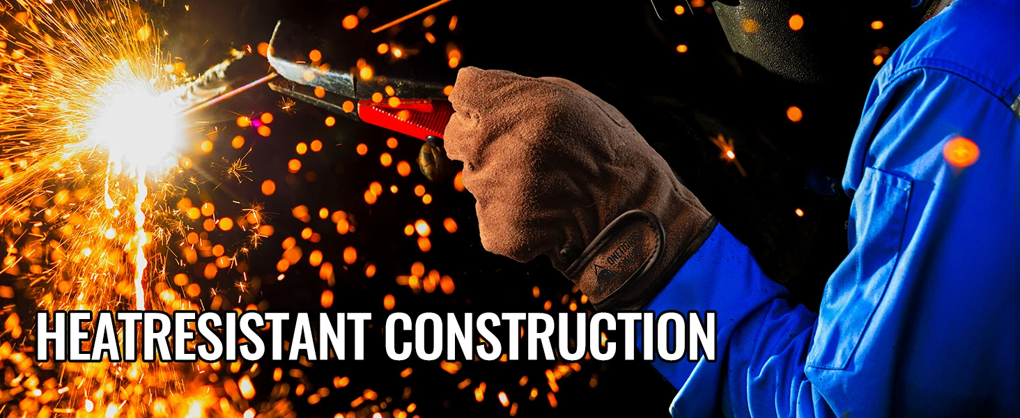 Premium A-Grade cowhide with fireproof treatment (932°F/500°C) work gloves,ergonomic stitching enhances dexterity for welding/forging/BBQ. Flexible yet abrasion-resistant, safety-certified heat insulation,ideal for small object handling.
