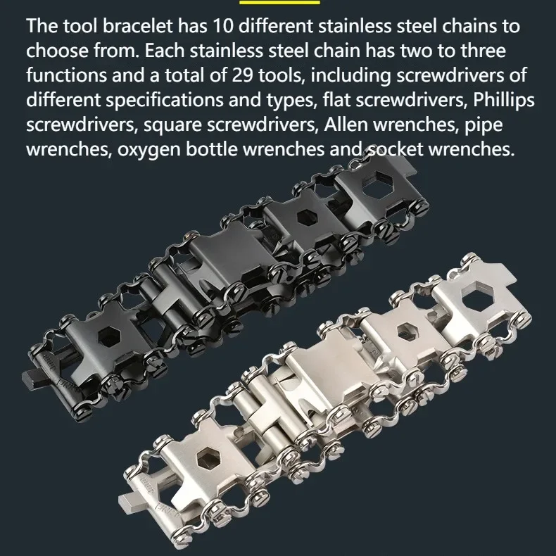 *29 tools in one bracelet,you can disassemble it and make different combination at your convenience: