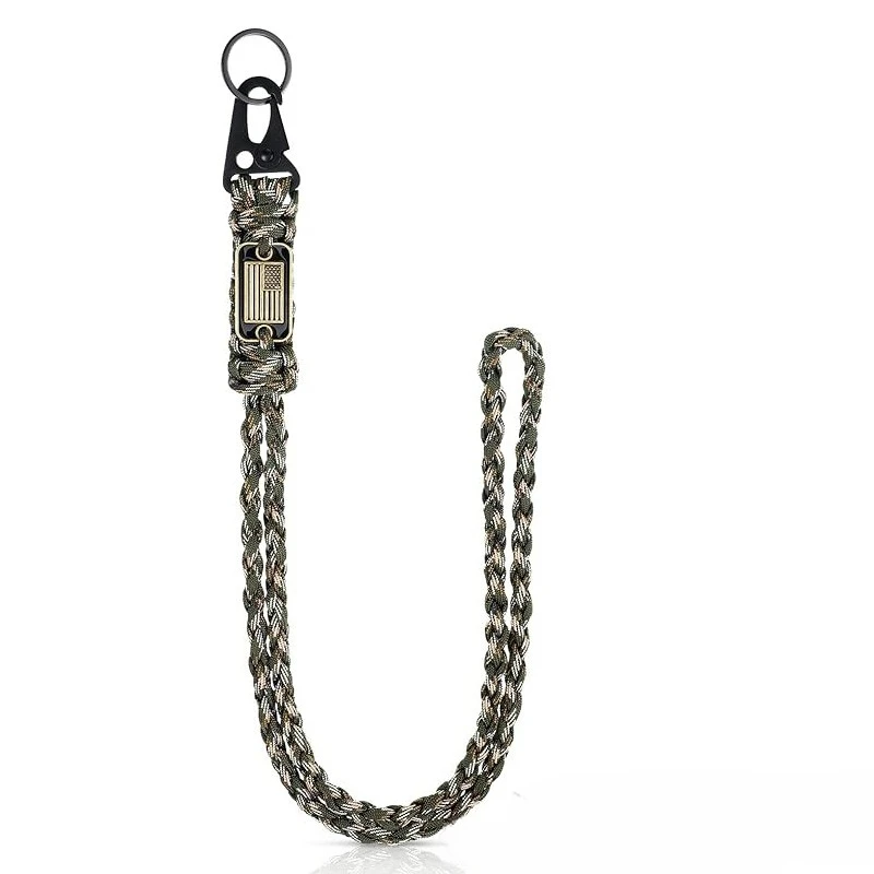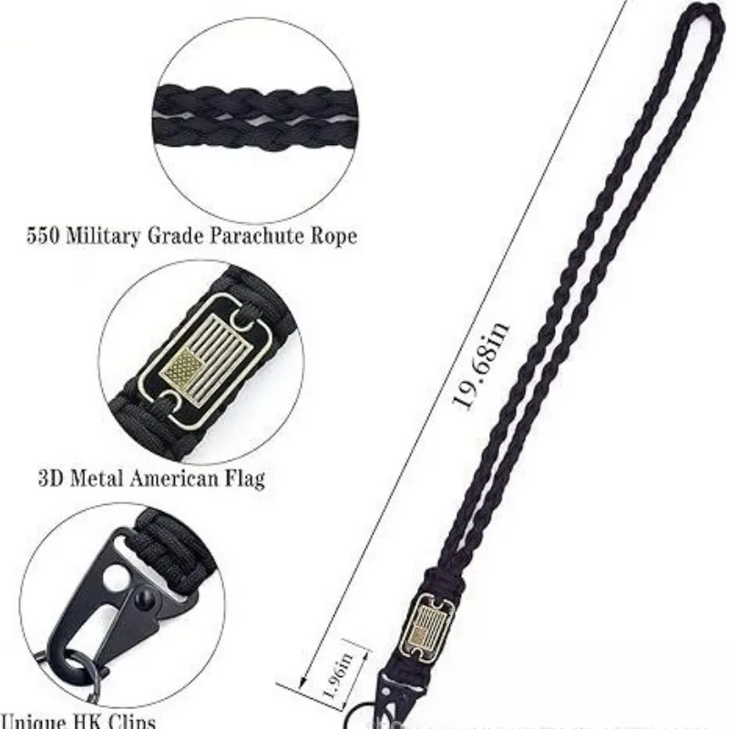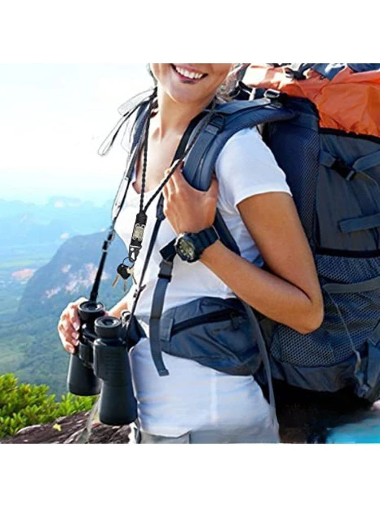 Outdoor Paracord Necklace, Camping Paracord Woven Phone Strap with Carabiner Keychain for Survival