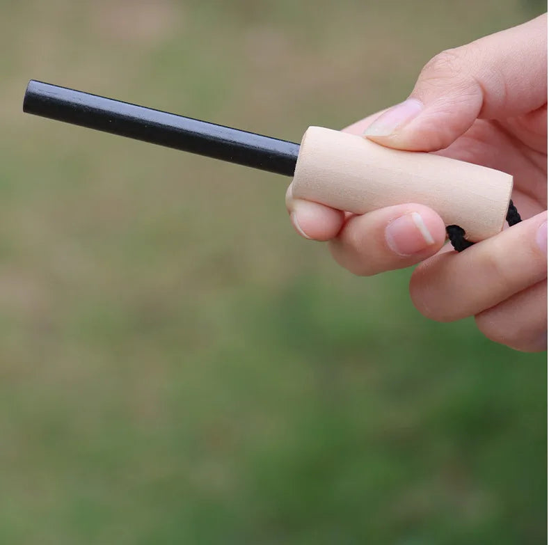 Outdoor Survival Flint Fire Starter with Wood Handle, Multi-Tool Magnesium Rod - Luminous Waterproof Camping Fire Stick