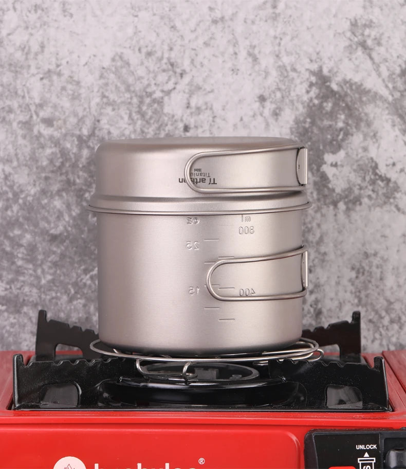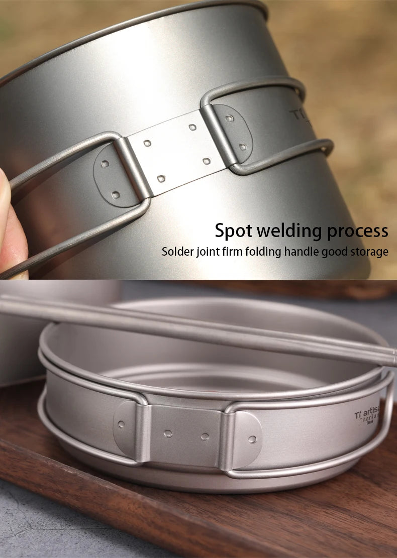Tiarisan Pure Titanium Cooking Set Outdoor Camping Ultralight Foldable Frying Pan And Pot Set Durable Corrosion Resistance Cookware Equipment For Travelling Picnic Backpacking