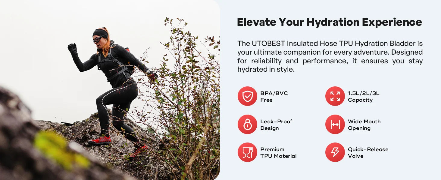 UTOBEST 1.5L/2L/3L Water Bladder Hydration Pack Reserevoir TPU Water Storage Bag for Camping Cycling Running Hiking