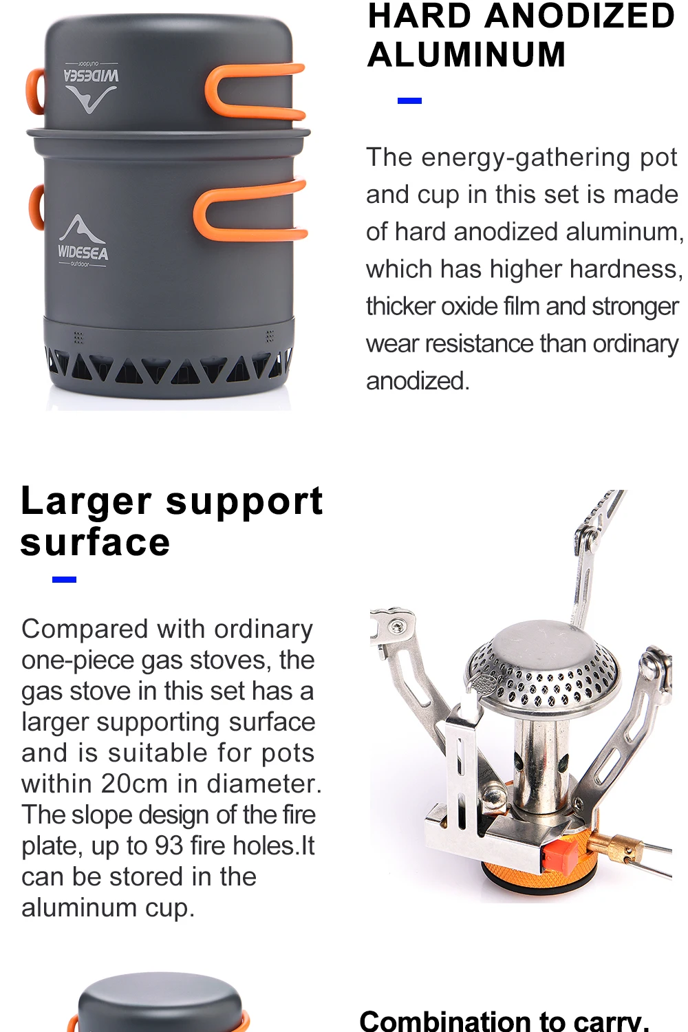 Widesea Portable Camping Cookware Set Aluminum 1.3L Pot 440ML Cup Stove Cutlery Set Bracket for Outdoor Cooking Hiking Backpack