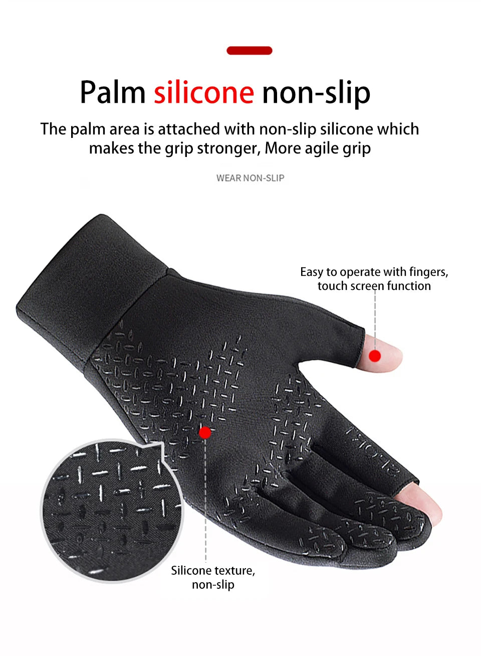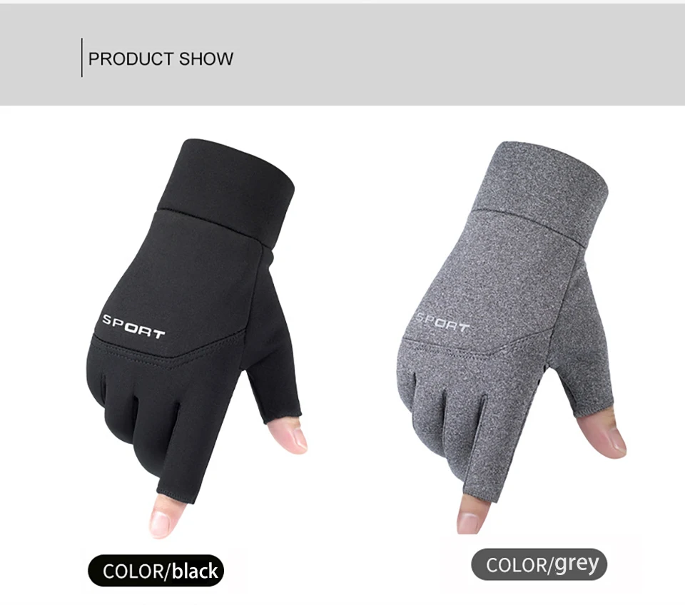 Winter Fishing Gloves Women Men Warm Cycling Protection Anti-Slip Glove for Fishing Touch Screen Two Fingers Cut Outdoor Angling